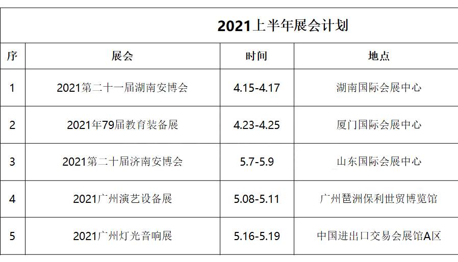 ANE2021年上半年展会计划